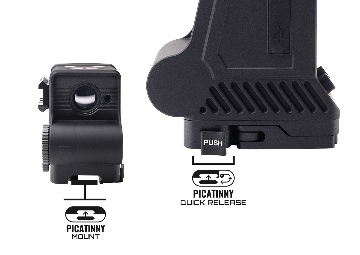 Temperature Variation Detection: 0.07ᵒ F Reticle Pattern: 5 Reticle Color: 4 Thermal Color Palettes: 5 Power Supply: Rechargeable 16340 (2 inc) IP Rating: IP67 Mount: Quick Release Picatinny Recoil: 800 G Dimensions: 2.3" x 3.17" x 2.9" Weight: 0.55lb lb