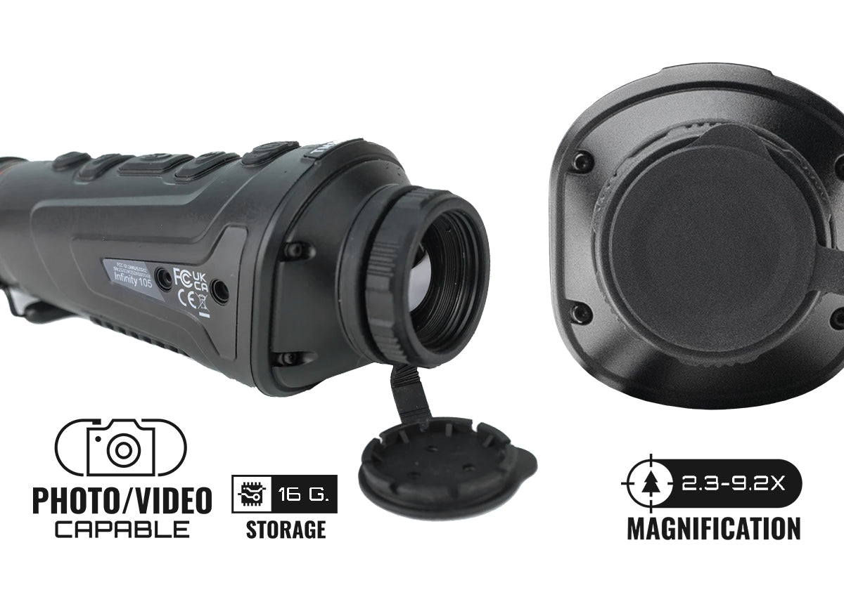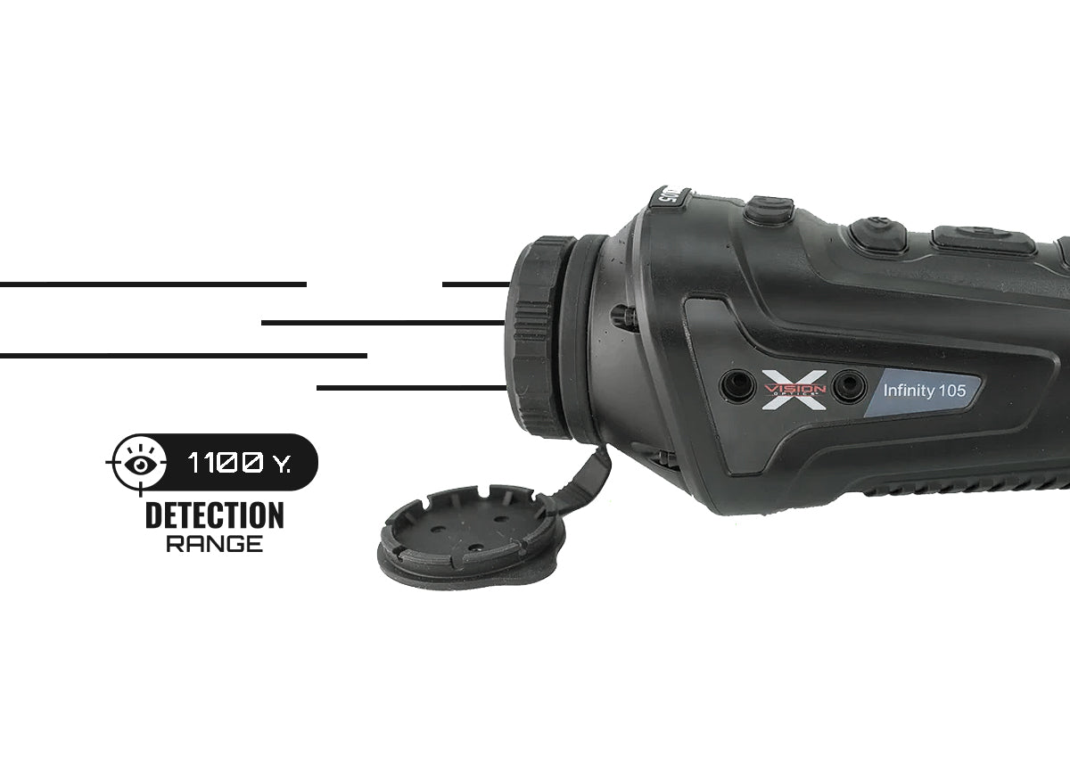 The Infinity 105 Thermal Monocular allows you to detect big game up to 1,100 yards away!